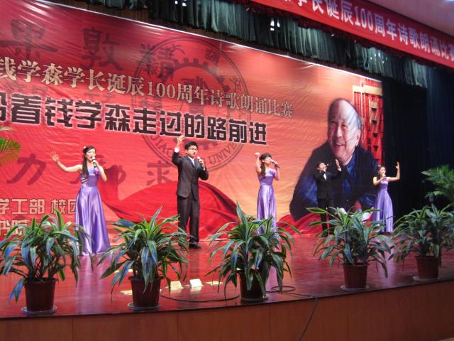 本次朗诵会是西安交大纪念钱学森学长诞辰100周年系列活动之一,由学工部、校团委主办,仲英书院承办,各学院协办。各学院、书院的百余名同学齐聚一堂,用深情的朗诵抒发对钱老的深深思念,涌现了如《我为谁而来》、《钱学森——中国脊梁》、《钱学森 归国》、《追寻大师 我们在路上》等优秀的原创作品。