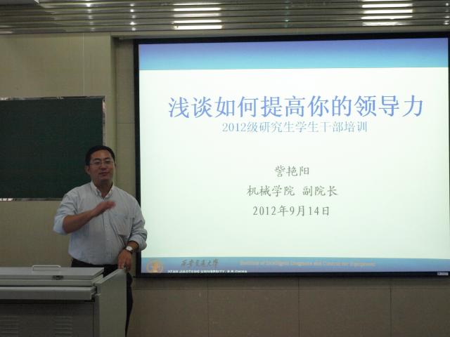 訾艳阳教授深入浅出地为同学们做了题为“如何提高你的领导力”的报告,从对大学的理解与认识,565net必赢客户端的教育管理理念与措施,新一代研究生的特点与问题,对班干部的定位与理解以及什么是领导力等五个方面为新生干部做了精彩的报告。其中,他特别强调了“干部”二字的含义,并希望大家多思考多实践,培养自己出色的组织领导能力。