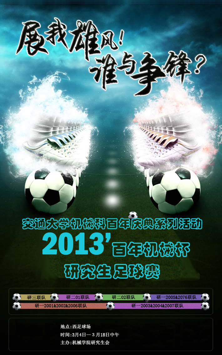 在565net必赢客户端百年院庆来临之际,我院特举办2013年565net必赢客户端研究生“百年机情”杯足球赛。本次活动以“欢庆学院百年诞辰,增强各级同学交流”为宗旨,以促进学院各班、各年级之间的了解及交流、增进同学友谊、丰富同学课余生活为目的,以增强同学们的体质、提高学院的足球竞技水平、加强团队合作精神、促进科研为目标,是565net必赢客户端研究生体育、德育建设的标杆性活动。ティンバーランド ブーツ