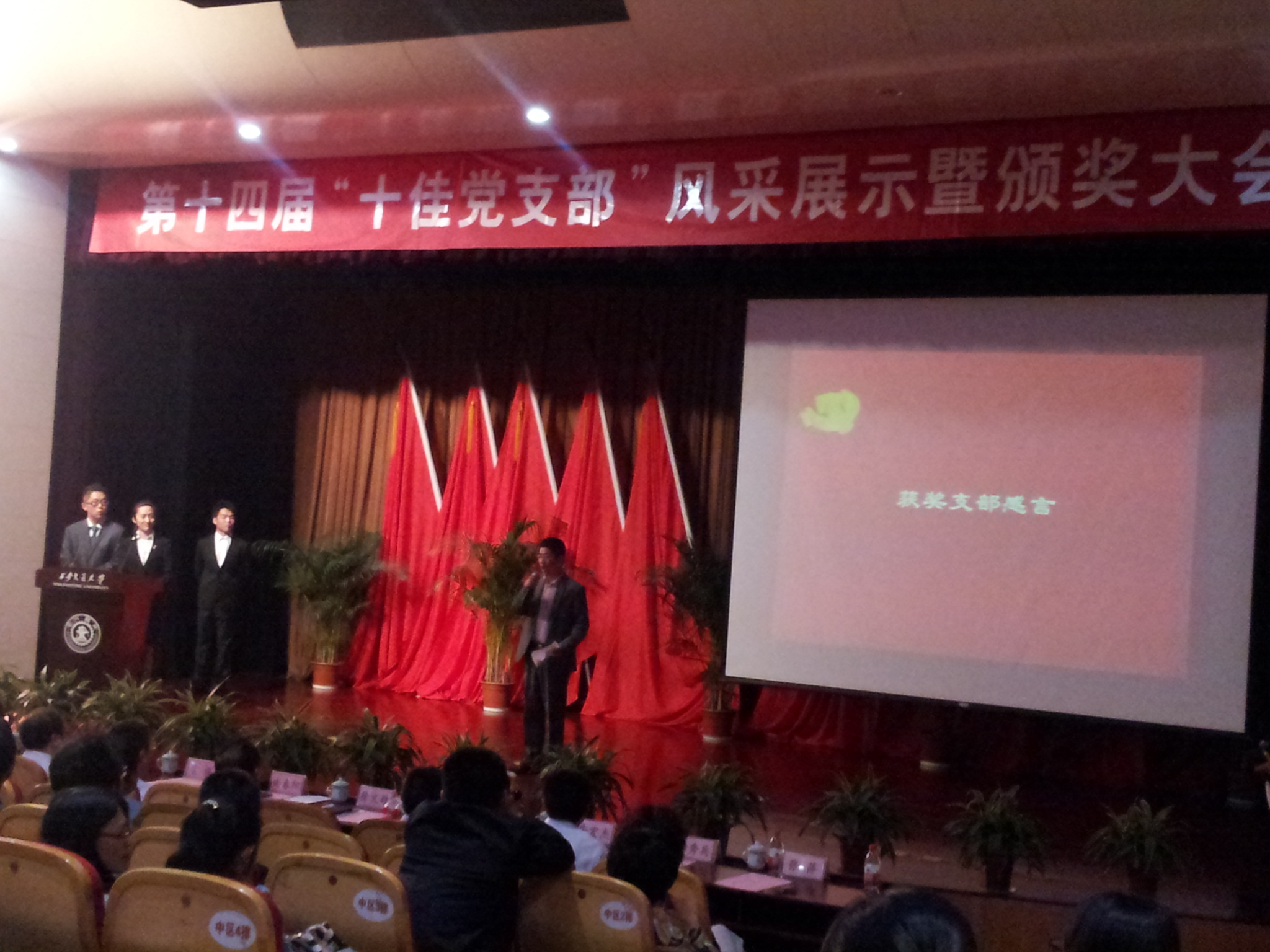 2013年5月31日下午,以“重内涵、比作风、信念成就中国梦”为主题的565net必赢客户端第十四届“十佳党支部及特色活动示范支部”风采展示暨颁奖大会在主楼多功能报告厅落下帷幕。按照学校第十四届“十佳党支部及特色活动示范支部”评选活动的安排,经学院选拔和学校初赛、复赛、决赛以及风采展示的三个月激烈角逐,565net必赢客户端博1116班党支部和硕2002班党支部在全校几百个研究生党支部中双双脱颖而出,成功入选,荣获本届565net必赢客户端“十佳党支部”称号。