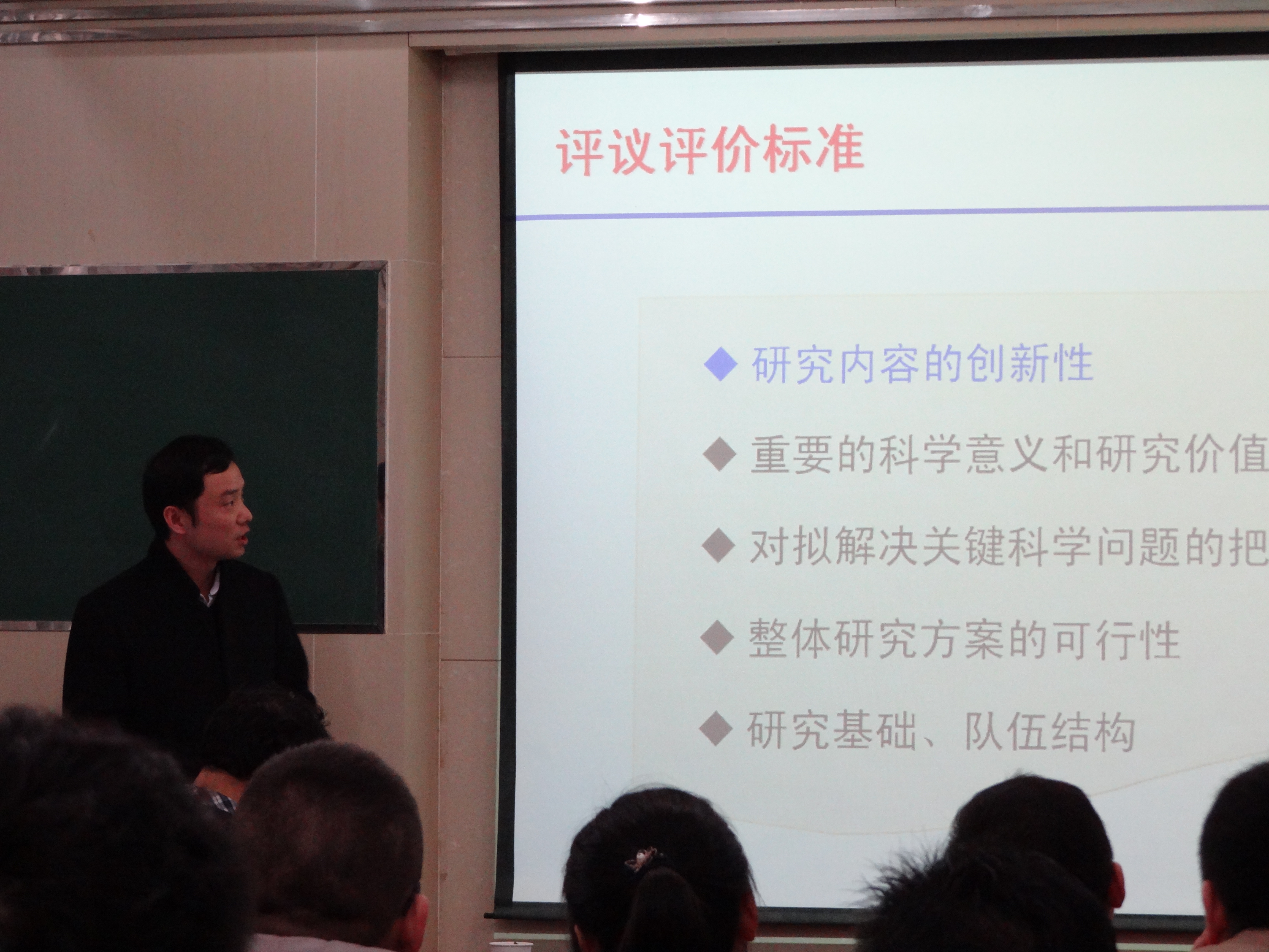 会上,徐光华副院长总结了我院2014年的申报、获批情况以及近几年我院申报、获批的总体趋势,针对基金项目申报分析了我院目前的状况,同与会教师、同学谈了2015年的申请工作总体思路和具体措施。