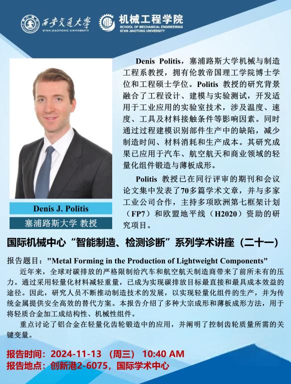 国际机械中心“智能制造、检测诊断”系列学术讲座(二十一)
