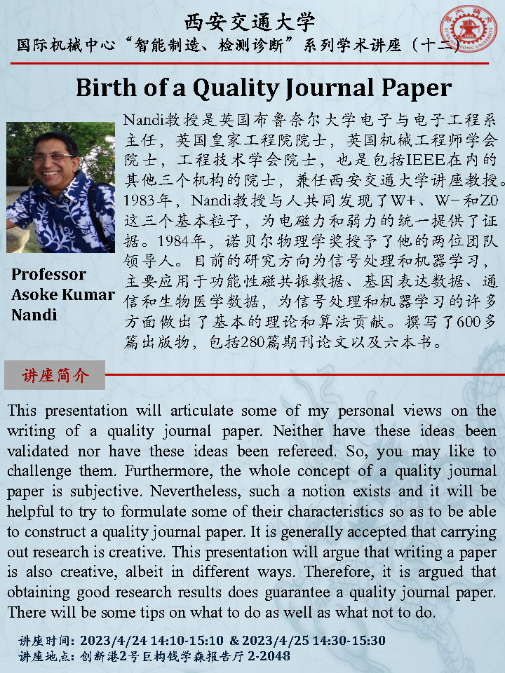 国际机械中心“智能制造、检测诊断”系列学术讲座(十二)