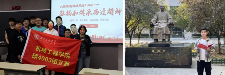 “西迁精神”的核心是爱国主义,精髓是听党指挥跟党走,与党和国家、与民族和人民同呼吸、共命运。为学习与传承老一辈西迁人的精神财富,引导青年学生走出“小格局”,拥抱“大世界”,将个人学术追求对标国家战略需求,将个人发展融入国家发展,支部组织开展“西迁精神”学习与知识竞赛、西迁博物馆参观及挖掘交大历史建筑、雕塑一景一事的系列团日活动。从理论学习、观光浏览的强化入脑,到故事再现、精神再悟的厚植于心,一系列团日活动,为今后同学们的科研实践提供丰富的精神信标。