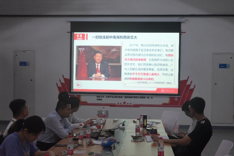 青年工作是党和国家事业的重要组成部分,为了学习党中央对青年工作的重点部署,大家观看了党史教育短片《书写无愧于时代的青年华章》,深刻认识到以习近平同志为核心的党中央对青年工作的高度重视。与会同学聚精会神,边听边写,收获良多。