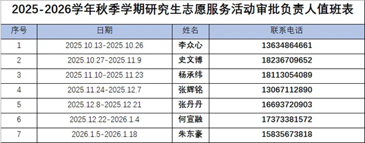 图2志愿服务中心活动审批负责人值班表