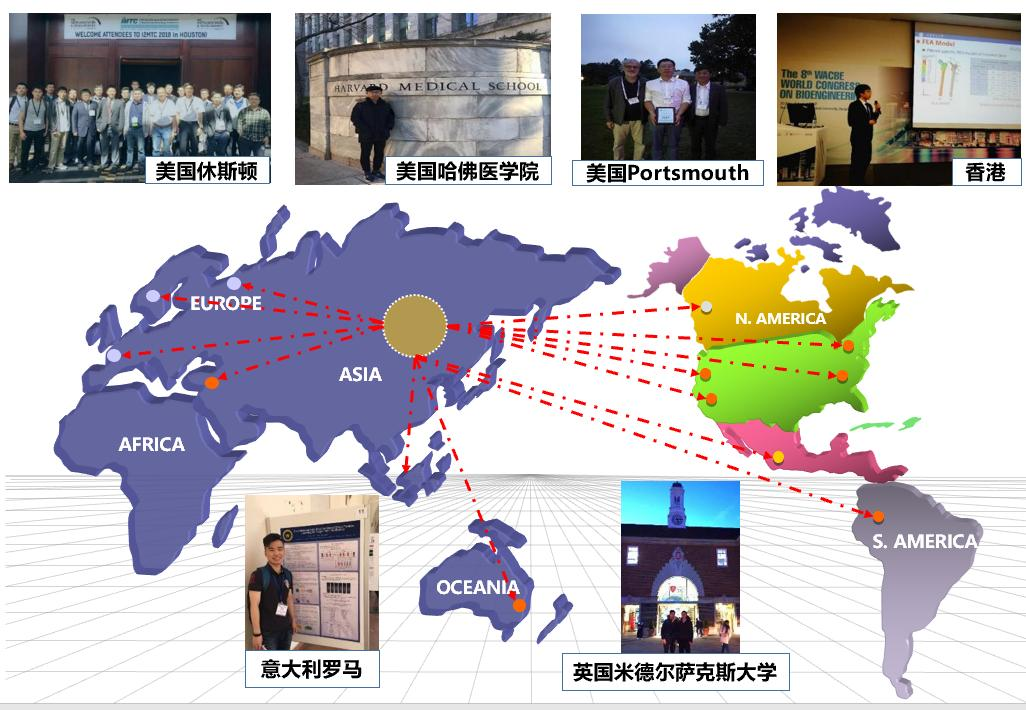 中心已与美国、瑞士、德国、法国、新加坡、日本等国家的高校和科研机构开展了多方面的学术交流与合作,具体包括美国哈佛医学院、美国凯斯西储大学、美国佐治亚理工大学、瑞士苏黎世联邦理工、德国多特蒙德工业大学、法国巴黎第十一大学、法国巴黎高等师范学院、新加坡南洋理工大学、日本东京大学等。
