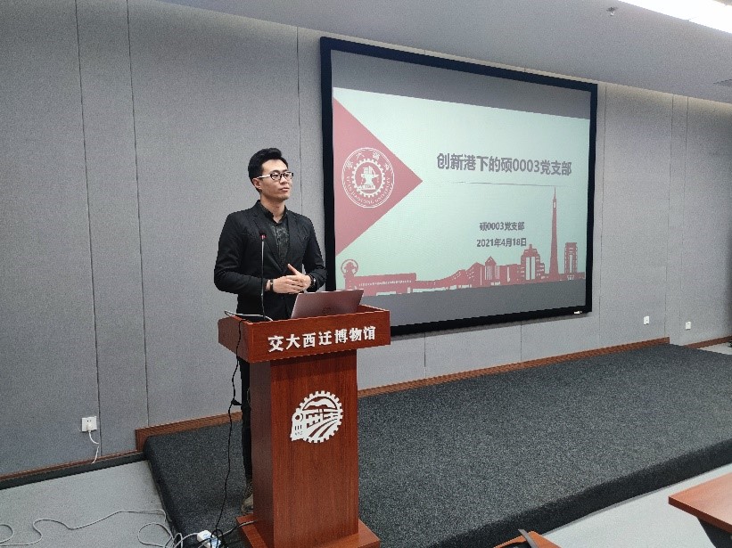 随后565net必赢客户端硕0003党支部书记李希晨介绍了创新港以及高端装备研究院的基本情况,期待本科生同学以后来到创新港,并对硕0003党支部的基本情况、思想建设活动等进行了介绍。