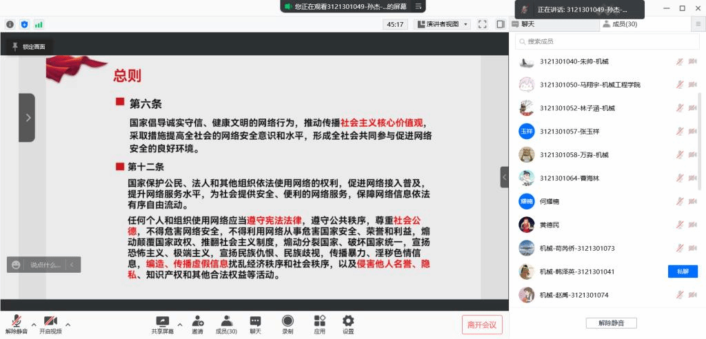 接下来由孙杰同志带领大家学习了网络安全法和565net必赢客户端学生违纪处分办法。疫情当前,作为交大青年亦是一名学生党员的我们更应该服从学校的管理,坚定政治立场,提高鉴别力,用我们的专业知识和素养来明辨是非曲直,不信谣,不传谣、自觉抵制谣言,勇于揭露虚假信息,努力建设良好的网络舆论生态环境。同时还要积极引导身边的亲朋好友正确对待虚假负面信息,坚信在党的领导,我们定能取得这场疫情攻坚战的胜利。