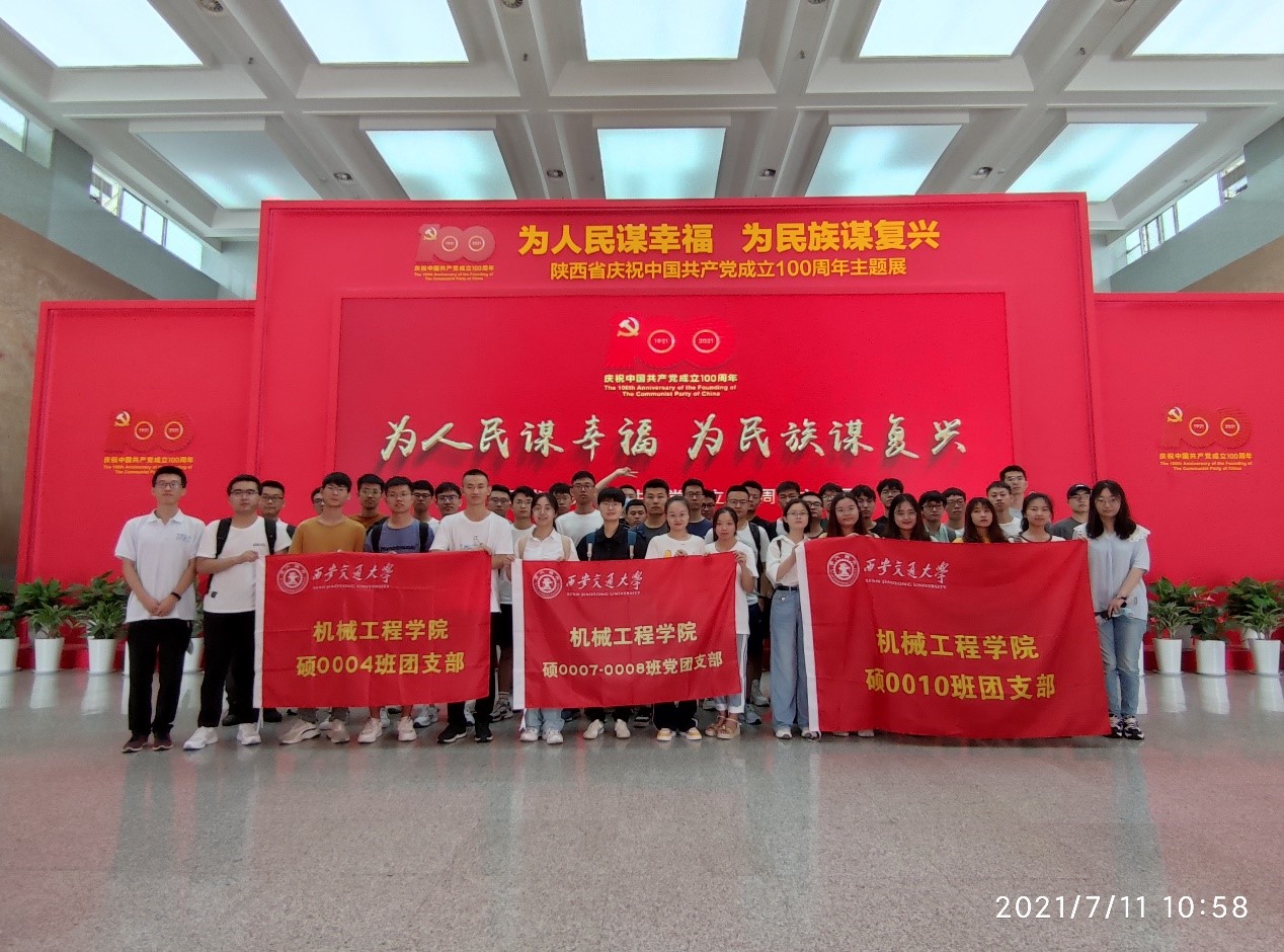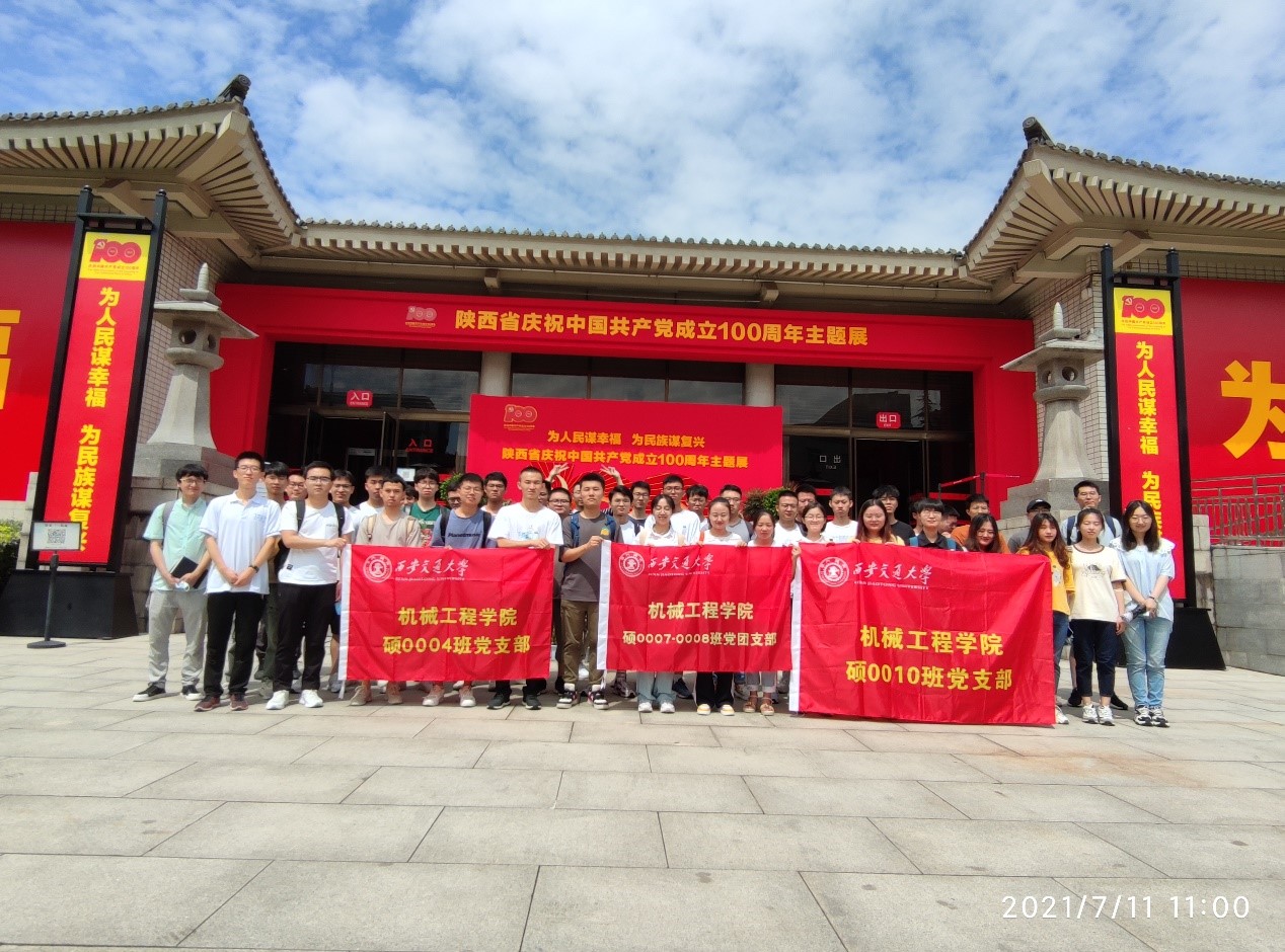 在庆祝中国共产党成立100周年之际,为深入学习贯彻习近平总书记“七一”重要讲话精神,切实把思想和行动统一到讲话精神上来,推动党史学习教育走深走实,7月11日,565net必赢客户端硕0004党支部、硕0007&0008党支部和硕0010党支部联合组织党员、积极分子前往陕西历史博物馆,集体参观“为人民谋幸福为民族谋复兴——陕西省庆祝中国共产党成立100周年主题展”。
