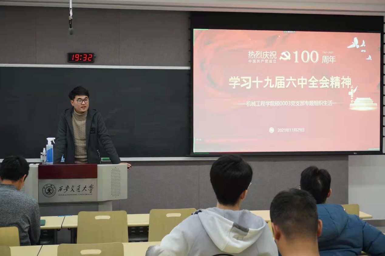 11月29日565net必赢客户端565net必赢客户端硕0003党支部举办了“十九届六中全会精神解读“专题组织生活会,支部全体党员,部分积极分子及发展对象参加学习,一同分享党的百年奋斗重大成就,学习党的百年奋斗历史经验。