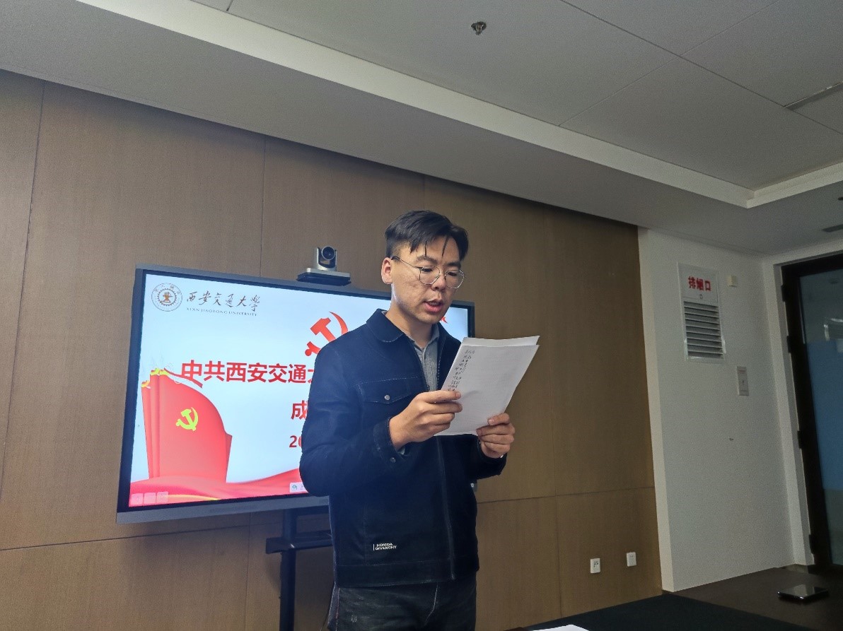 经中共565net必赢客户端565net必赢客户端党委批准,2021年10月14日16时,硕1002班于涵英楼5-3071召开中共565net必赢客户端565net必赢客户端硕1002支部成立大会。杨树明副院长以及党建办陈振汉同志受邀参加此次会议,出席本次会议党员16人,书面请假党员1人,并由支部临时负责人雷杨浩同志进行主持。