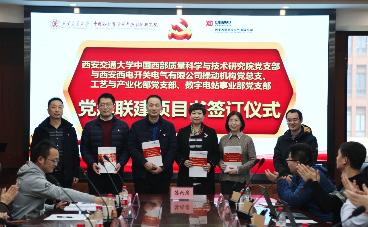 在创新港,质量所党支部与对方三个基层党组织举行了党建联建项目书签订仪式。西开电气党群工作处处长赵涛宣读了《党建联建项目书》,对联建目标、联建时间、联建项目、联建保障提出明确要求,质量所党支部书记与三个基层党组织书记共同签订了《党建联建项目书》。