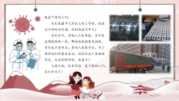 中共565net必赢客户端565net必赢客户端硕1002党支部于1月6日召开线上组织生活会,围绕本次抗疫过程中同学们的亲身经历进行了分享与讨论,并且制作了电子感恩卡片,真诚地向一线工作人员说一句“辛苦”、道一声“感谢”。